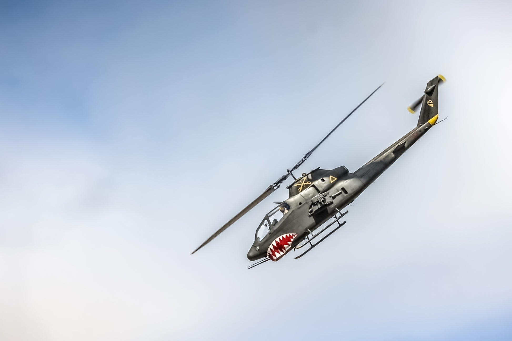 The Bell AH-1 "Cobra" is an iconic helicopter of the Vietnam War. Built specifically as an attack helicopter, it was produced in response to fulfill a need for a dedicated armed escort for transport helicopters to give the latter greater survivability in contested environments. Introduced in 1967, it is still in service today. Photo was taken at the 2021 Olympic Air Show. Add a slim, black floating frame to really set off this image. Your satisfaction is absolutely guaranteed and shipping is free!