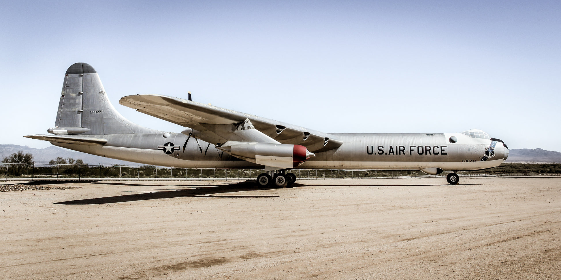 A rare aircraft indeed; the B-36 heavy bomber. As they say; 6 turning (propellers) and 4 burning (jet engines). Jimmy Stewart played the role of a pilot of a B-36 in the 1955 movie 'Strategic Air Command'. It was a critical part of the newly formed Air Force's Strategic Air Command (SAC) during the 1950s. Curtis LeMay kept these aircraft stateside during the Korean War as a deterrent to a possible attack by the Soviet Union. The cinematic style of the image fits the era perfectly. This image is available exclusively as a metal print and comes ready to hang. Your satisfaction is absolutely guaranteed and shipping is free!