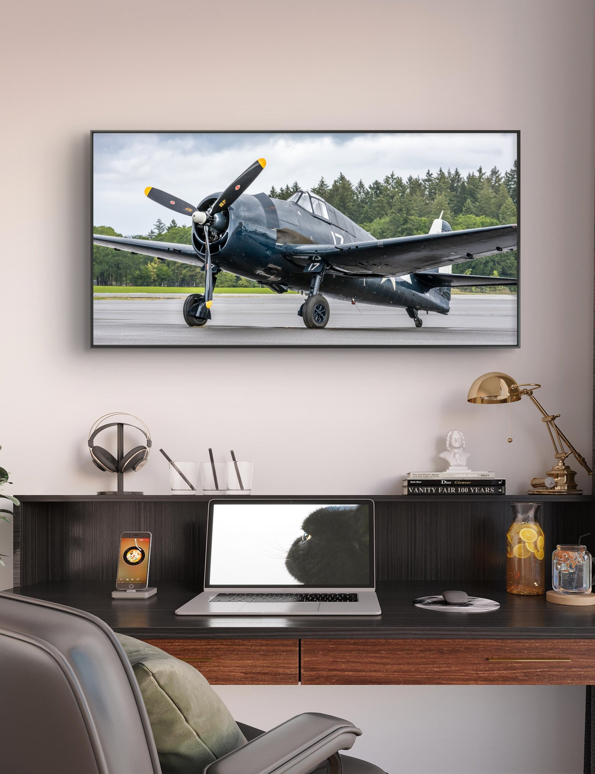 Beginning with its fleet introduction in September 1943, these rugged Navy fighters dominated the Pacific Theater. Hellcats were credited with destroying a total of 5,223 enemy aircraft while in service with the U.S. Navy, U.S. Marine Corps, and Royal Navy Fleet Air Arm, achieving an astonishing 19:1 kill ratio. The Hellcat had more kills than any other Allied naval aircraft. Add a slim, black floating frame to really set off this image. Your satisfaction is absolutely guaranteed and shipping is free!