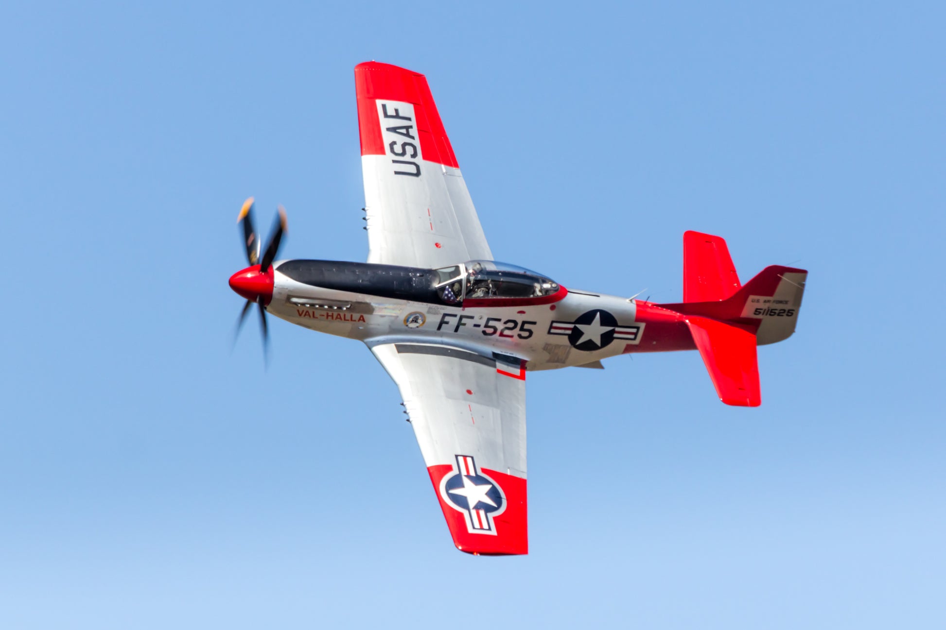 The beautifully restored P-51D, "VAL-HALLA". The aircraft was performing at the Heritage Flight Museum in Burlington, WA. Add a slim, black floating frame to really set off this image. Your satisfaction is absolutely guaranteed and shipping is free!