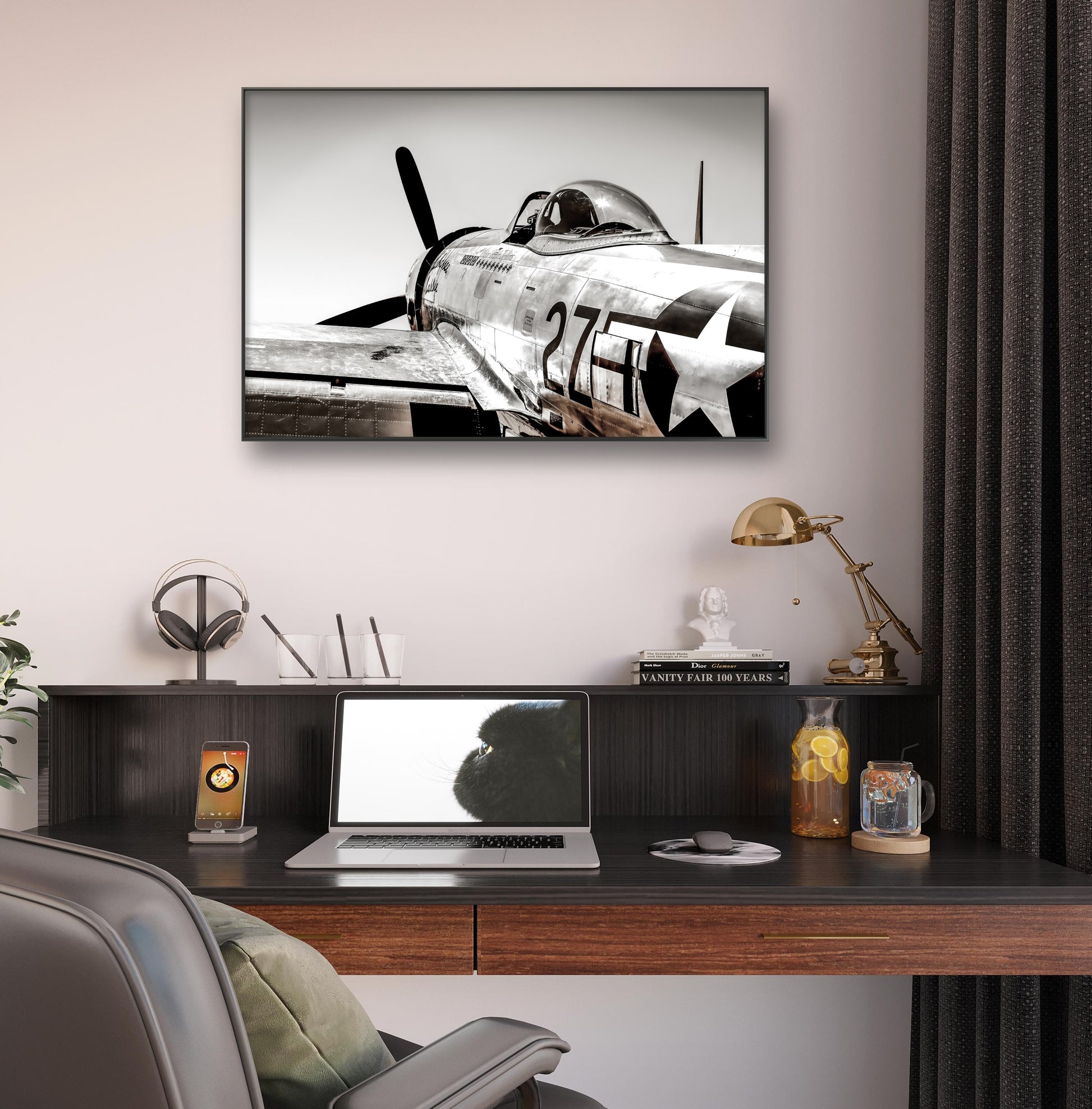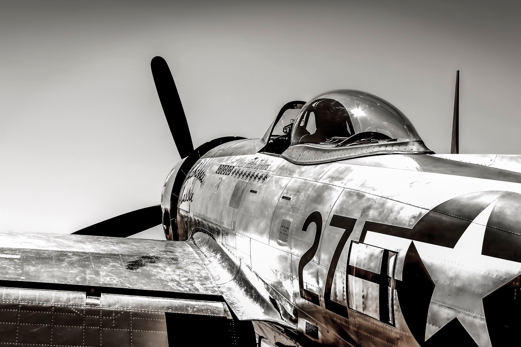 This P-47 is reflecting the squadron markings of Seattle native Colonel Ralph C. Jenkins. He commanded the Ninth Air Force’s 510th Fighter Squadron, based initially in England and then France, Belgium, and finally Germany at the end of World War II. Tallahassee Lassie is named after Jenkins’ wife and her hometown in Florida. Add a slim, black floating frame to really set off this image. Your satisfaction is absolutely guaranteed and shipping is free!